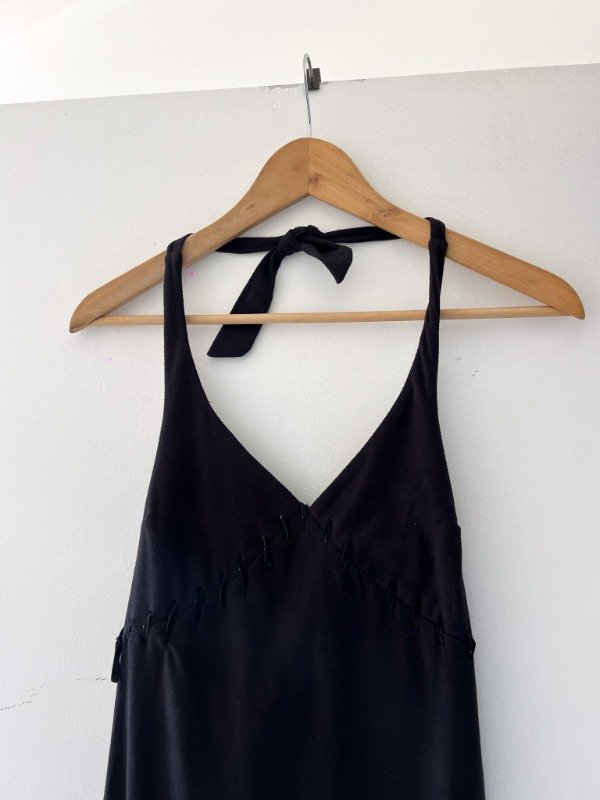 tela tipo gamuza, halter y con lazo para ajustar en la espalda